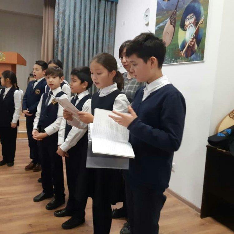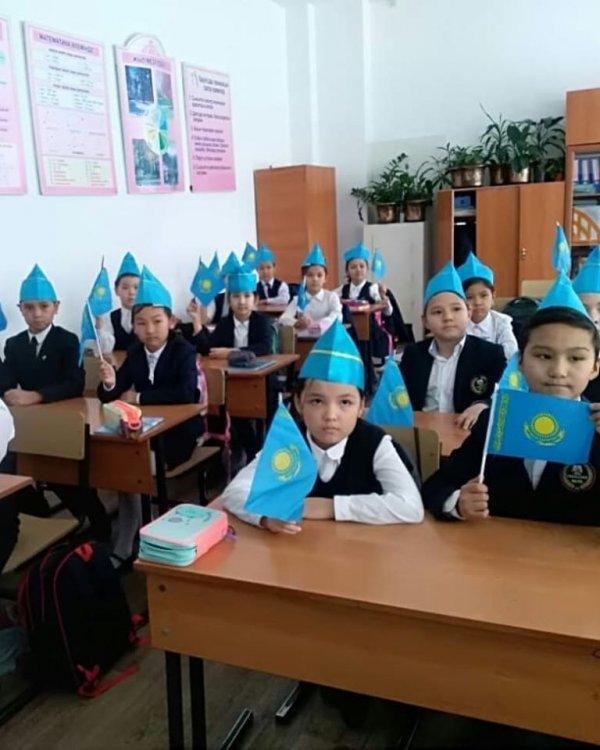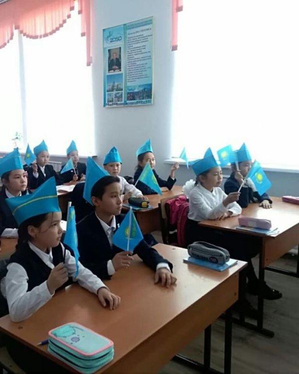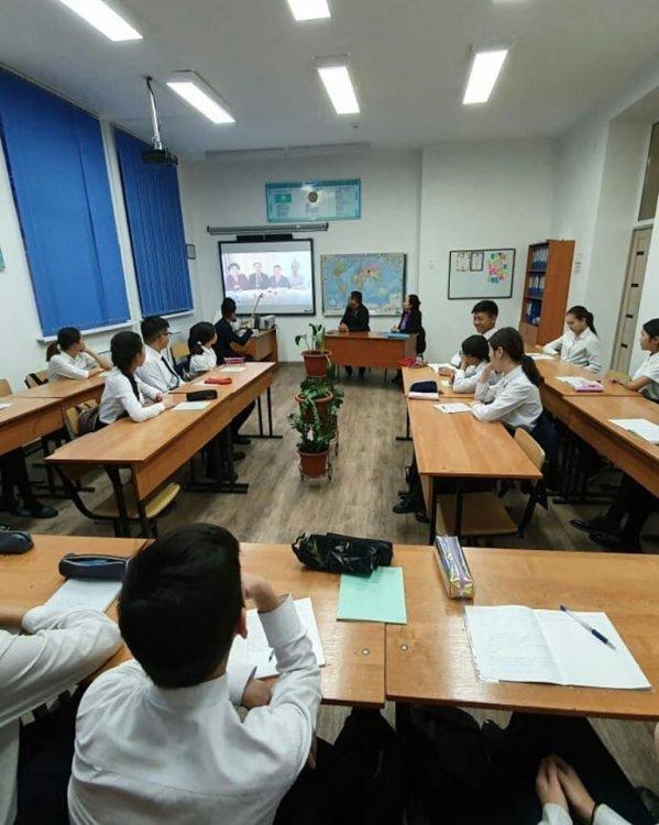 5 "а", "ә", "б" сыныптарында "Мұзда жанған алау" атты тақырыбында Желтоқсан оқиғасының куәгері Гүлжахан Жұмабердіқызымен бірге өткен тәрбие сағатынан көрініс.