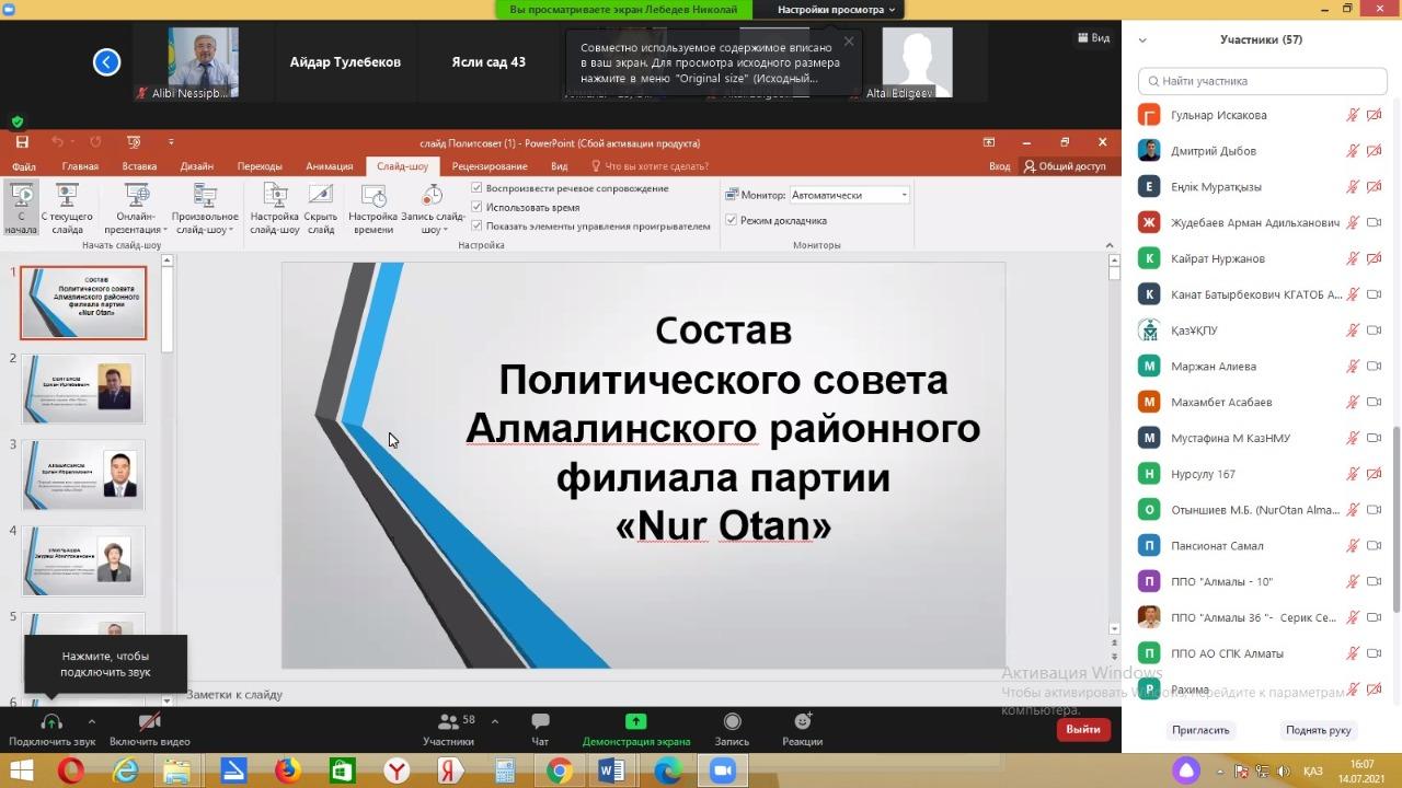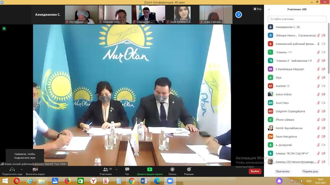 Бүгін онлайн форматта, ZOOM платформасында «Nur Otan» партиясы Алмалы аудандық филиалының кезектен тыс XXVII конференциясы өтті.