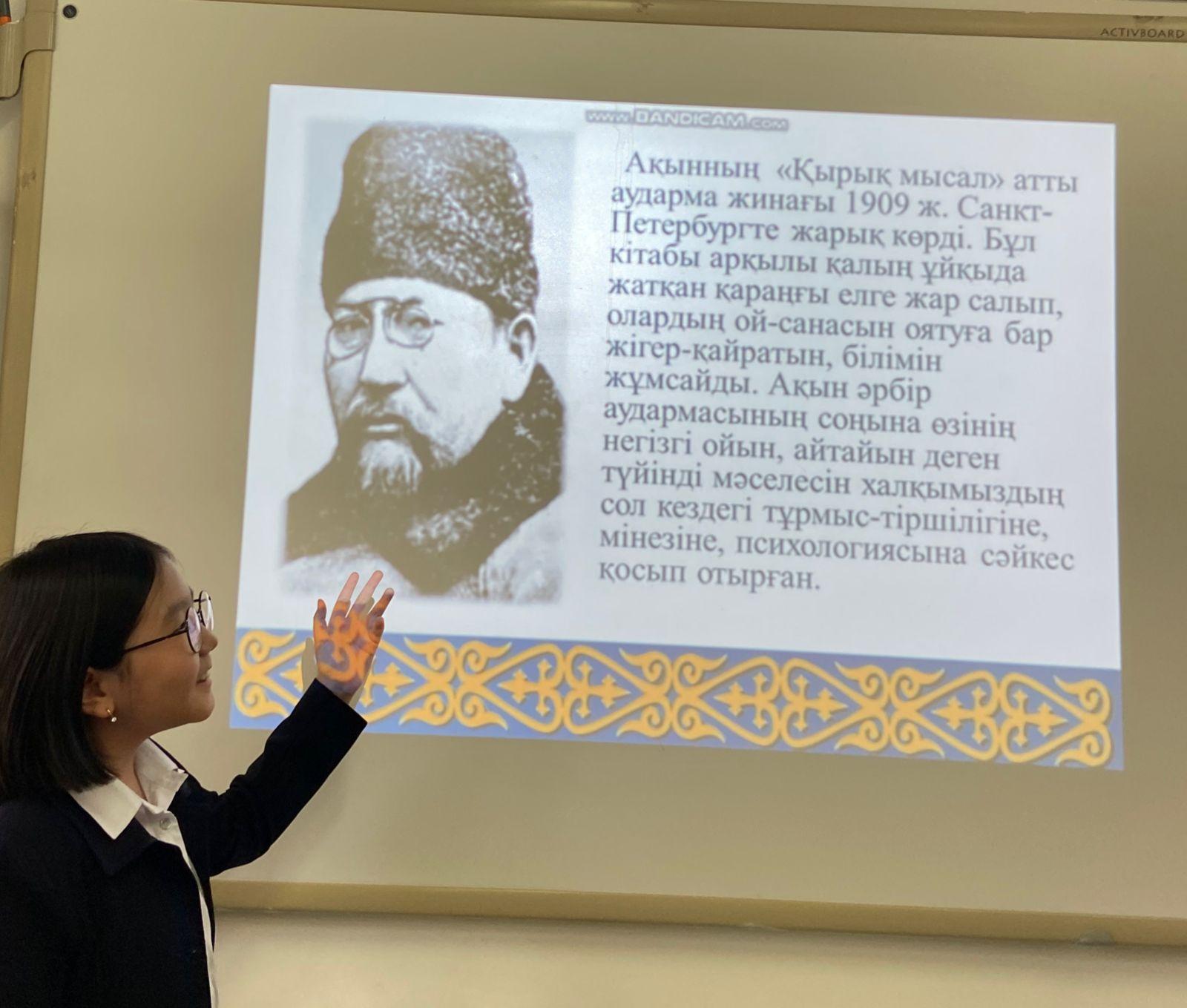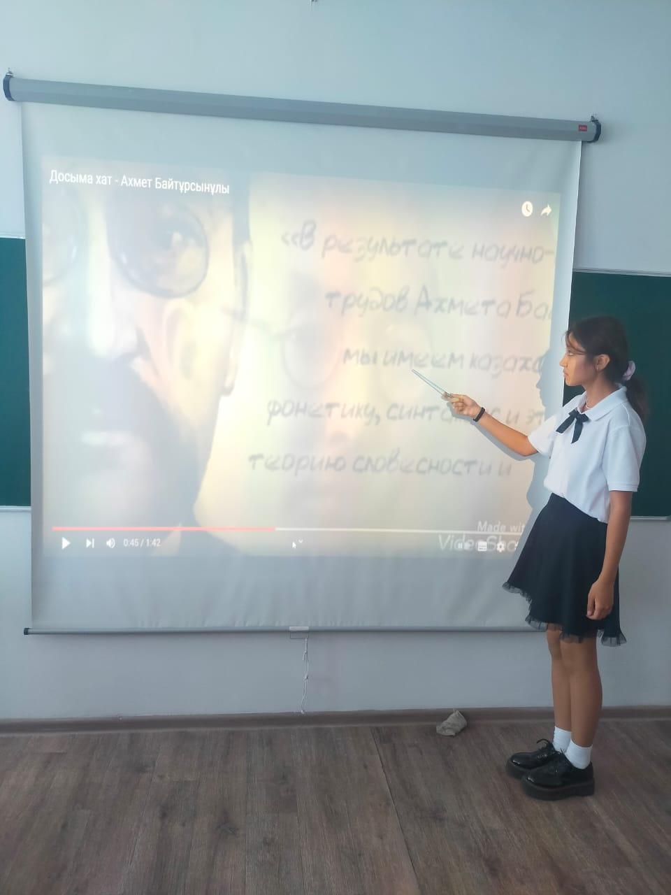 14 сентябрь 2022 0 1 2 3 4 5 Ахмет Байтұрсынұлының 150 жыл Б. Атыханұлы атындағы N36 гимназияда Ахмет Байтұрсынұлының 150 жылдығына орай мерекелік шара ұйымдастырылды. Бұл шараға мектеп оқушылары белсене қатысып, Ұлт ұстазы Ахмет Байтұрсынұлының өлеңдері мен шығармашылығы туралы ой қозғады. Осы беттің QR-коды:QR-код этой страницы: