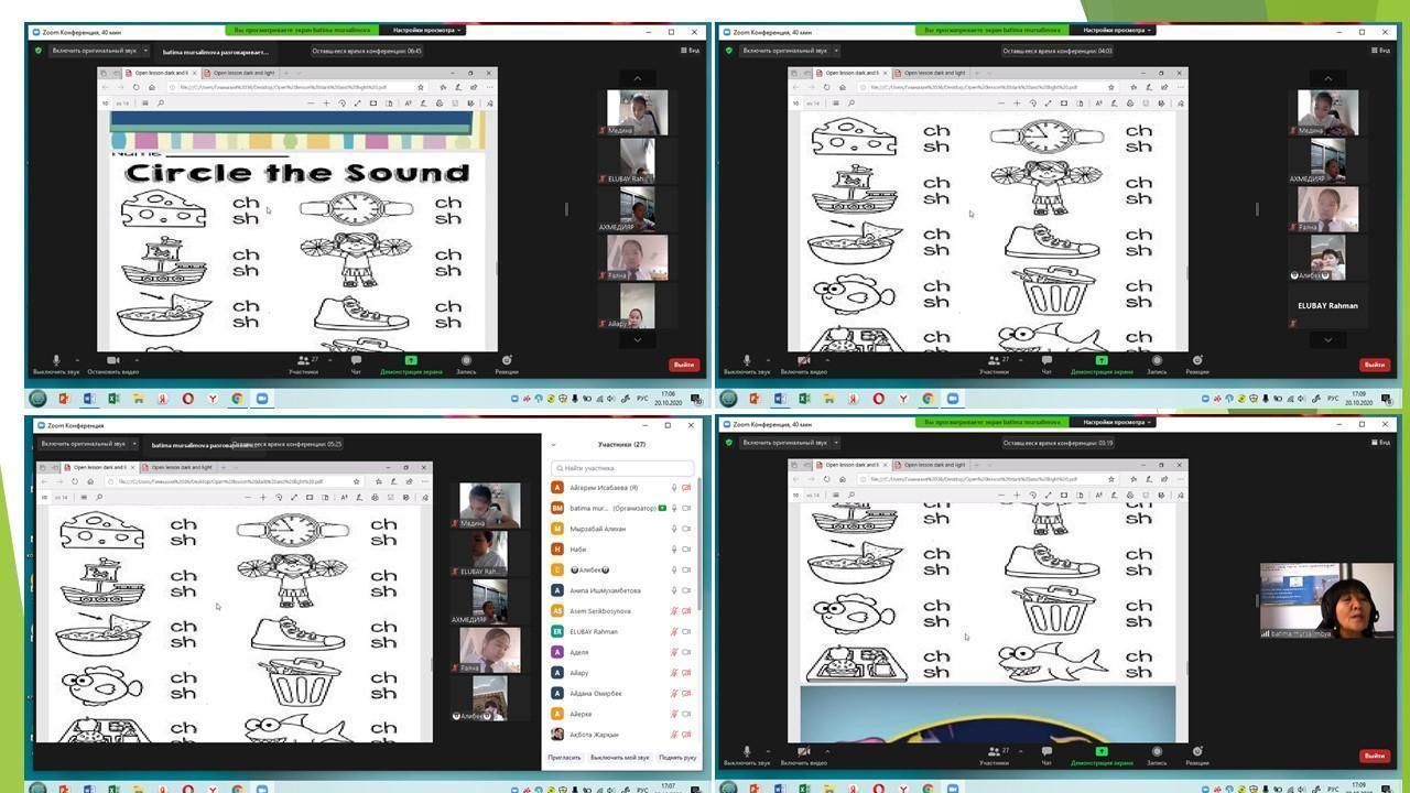Б.Даулетчинова 2 ә сыныбына «Дауыссыз К мен Г дыбыстары» тақырыбында ашық сабақ өткізді. Сабақты мұғалім Google Meet платформасымен өткізді.  Сабақта балалар берілген  тапсырмаларды құлшыныспен орындап, белсенділік танытты.
