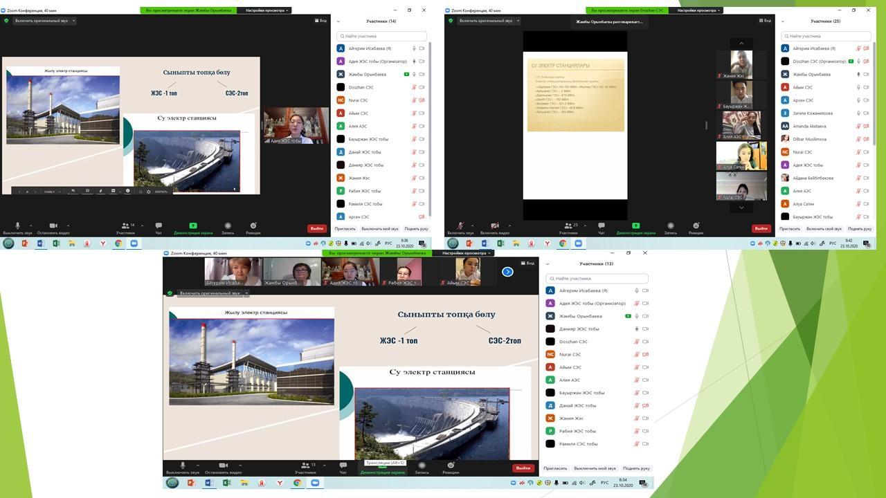 23.10.2020 күні 11 А сынып оқушыларымен физика сабағынан «Электр энегиясын өндіру, жеткізу, тұтыну» тақырыбында ашық сабақ өтті. Сабақта  жана педагогикалық технология элементтерін  пайдаланылды, оқушылар өздік ізденденгендерін көрсетіп, есептер шығаруда  алған білімдерін  қолданып, тақырыптың өмірмен байланысын баяндау кезінде ойларын еркін  жеткізе білді.