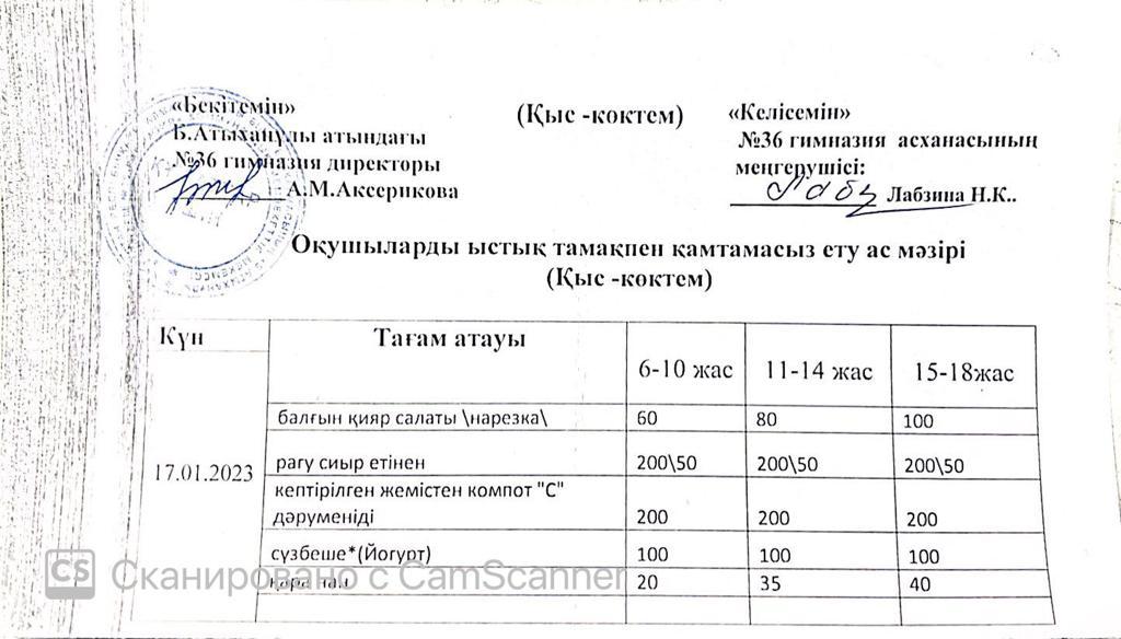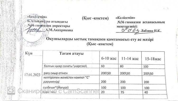 Төрт апталық бекітілген ас мәзірі (қыс-көктем) 1-4 сынып және СУСН
