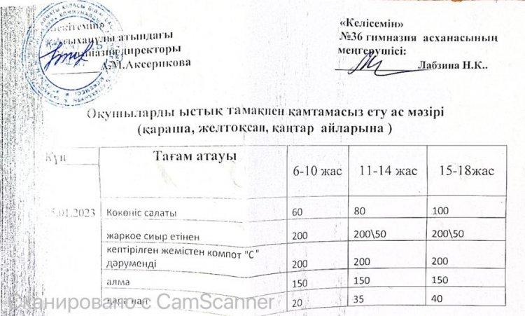 Төрт апталық бекітілген ас мәзірі (қыс-көктем) 1-4 сынып және СУСН