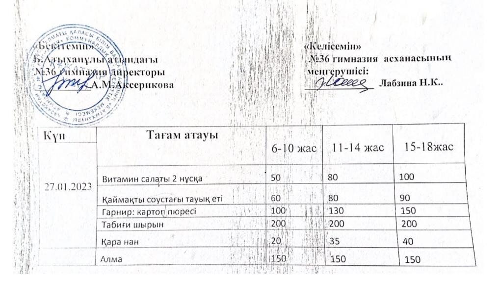 Төрт апталық бекітілген ас мәзірі (қыс-көктем) 1-4 сынып және СУСН