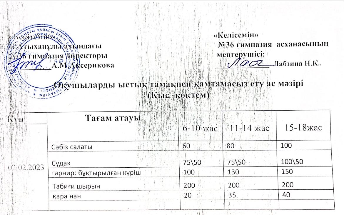 Төрт апталық бекітілген ас мәзірі (қыс-көктем) 1-4 сынып және СУСН