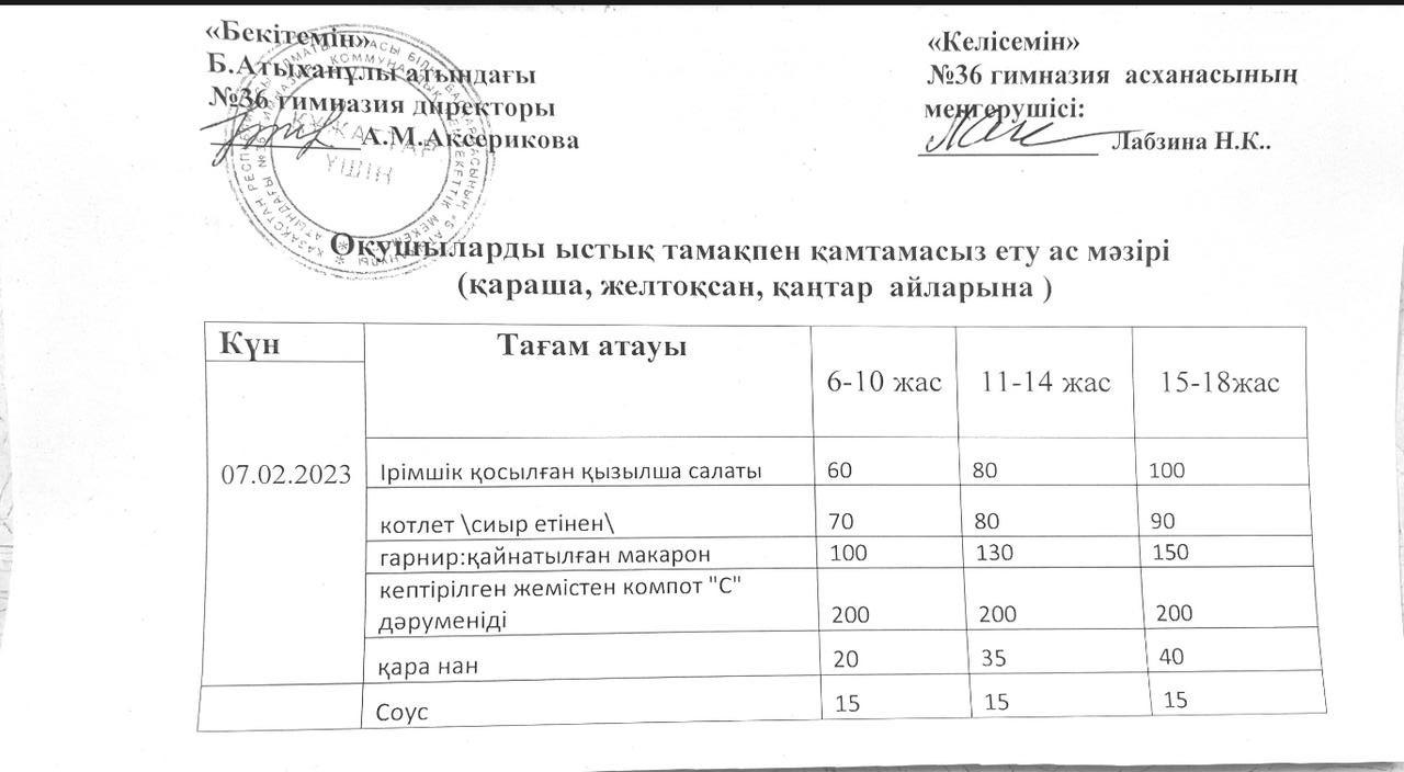 Төрт апталық бекітілген ас мәзірі (қыс-көктем) 1-4 сынып және СУСН