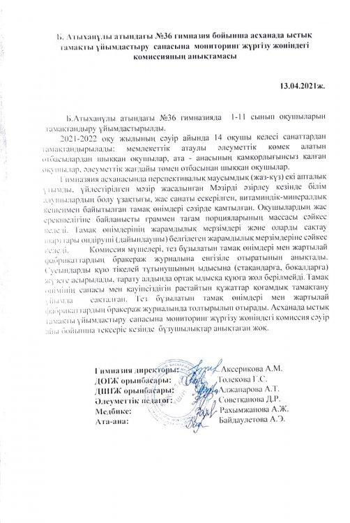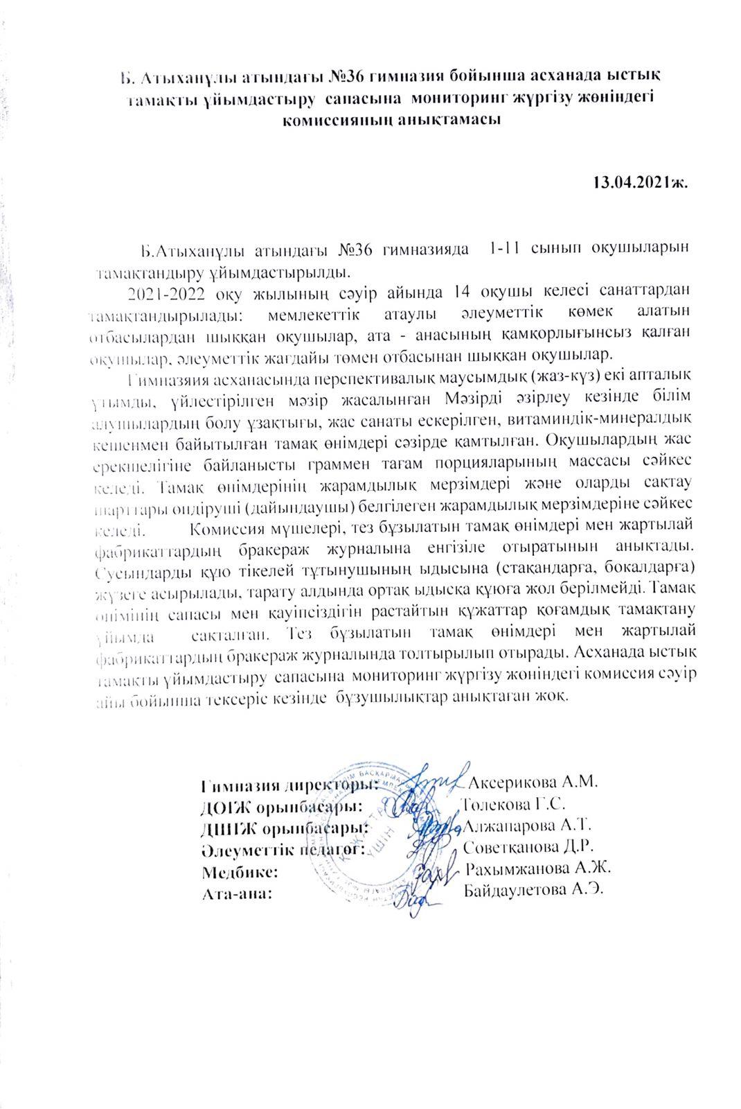 13 апрель 2022 0 1 2 3 4 5 Тамақтандыруды ұйымдастыру сапасына мониторинг жүргізу жөніндегі комиссияның анықтамасы Осы беттің QR-коды:QR-код этой страницы: