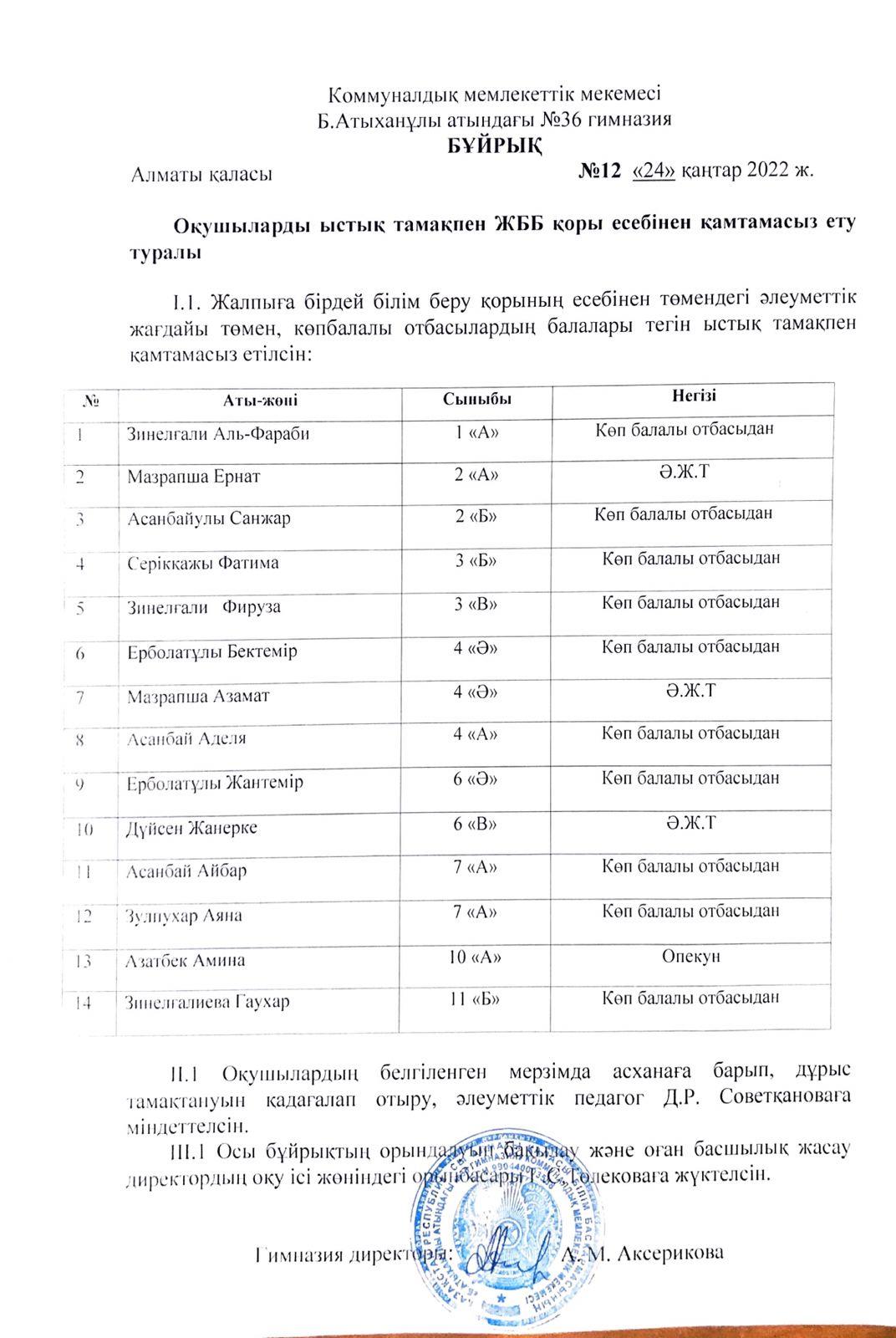24 январь 2022 0 1 2 3 4 5 Оқушылардың ыстық тамақпен ЖББ қоры есебінен қамтамасыз ету бұйрық Осы беттің QR-коды:QR-код этой страницы: