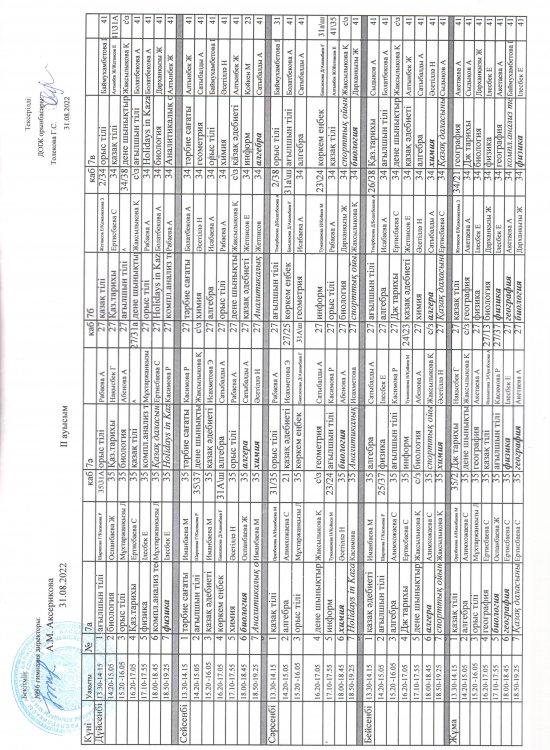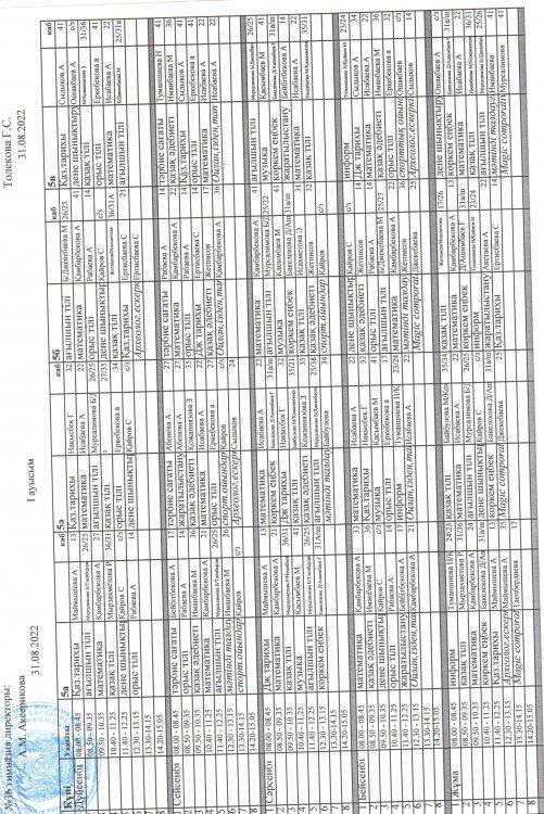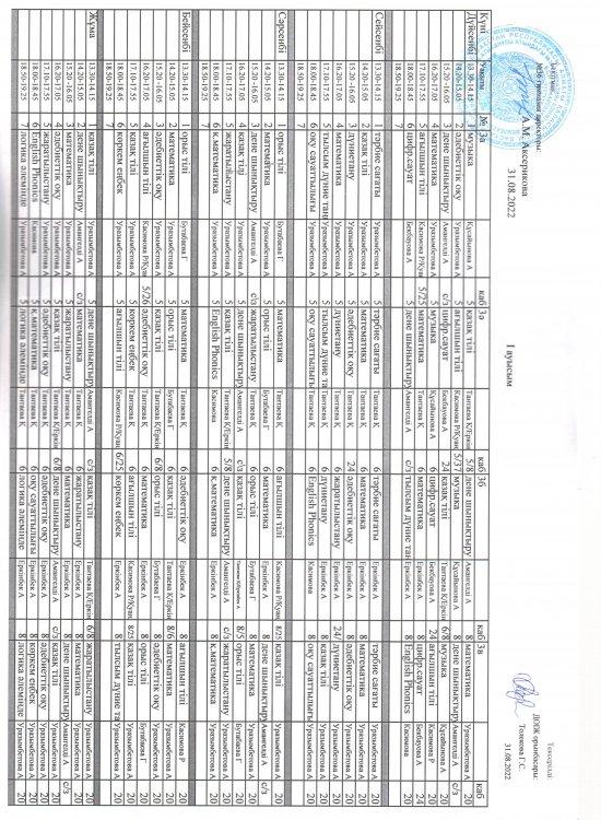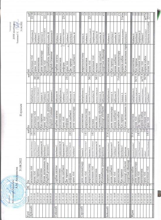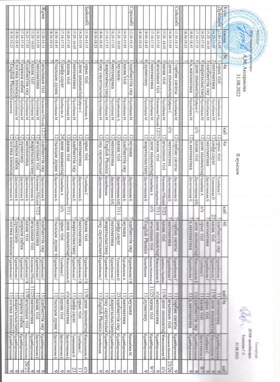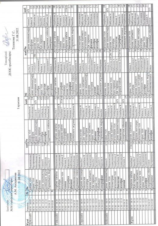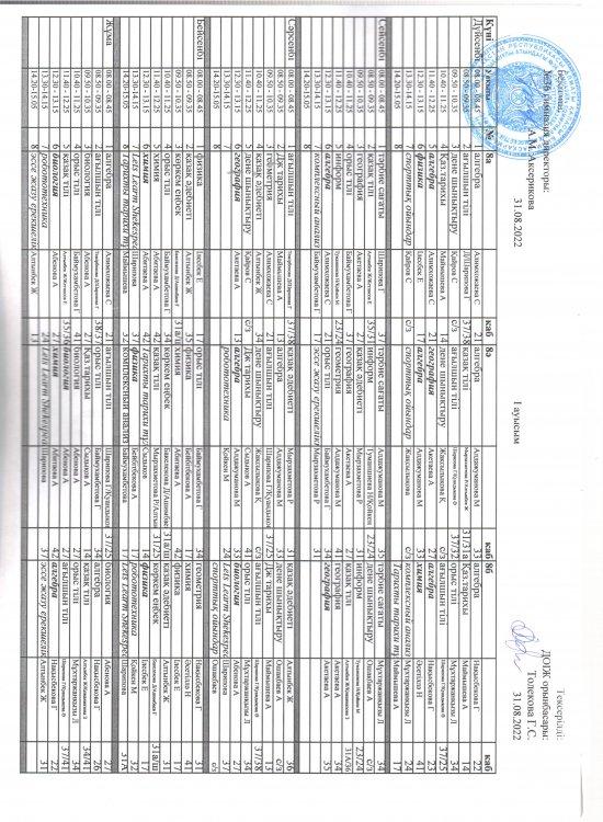 Оқушылардың тегін тамақпен тамақтану кестесі
